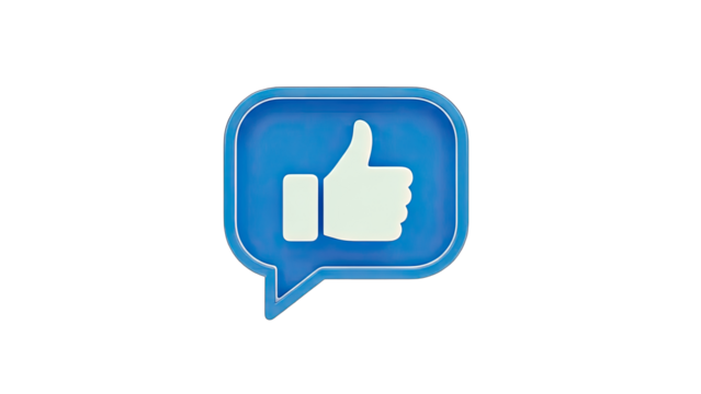 3D Thumbs Up Like Icon In Blue Speech Bubble on transparent background