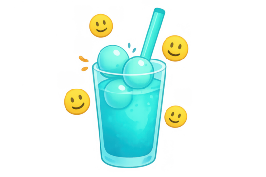 Cheerful yellow smiley face emoticon with blue border on transparent