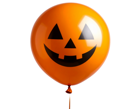 Spooky pumpkin balloon floating cheerfully for Halloween celebrations and autumn festivals transparent PNG, isolated background