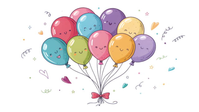 adorable heart shaped balloons with smiling faces colorful design transparent background
