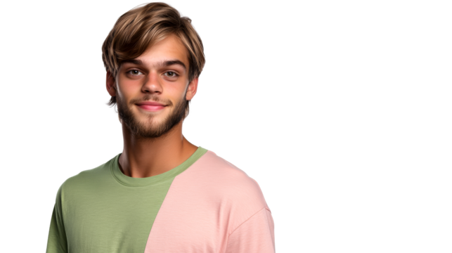 Smiling Bearded Man in Two-Tone Shirt Portrait, cut out transparent