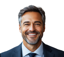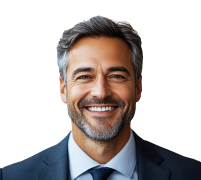 Professional man smiling in business attire isolated on transparent background, png