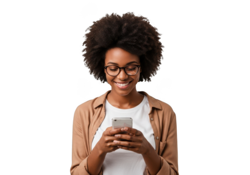 Friendly cartoon woman with glasses and brown hair isolated on transparent background, png