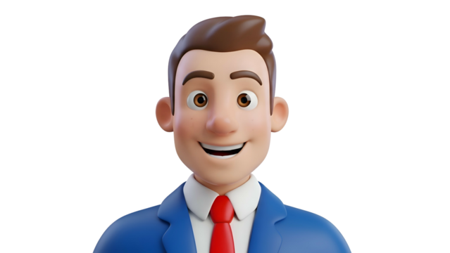 Smiling cartoon businessman with red tie.