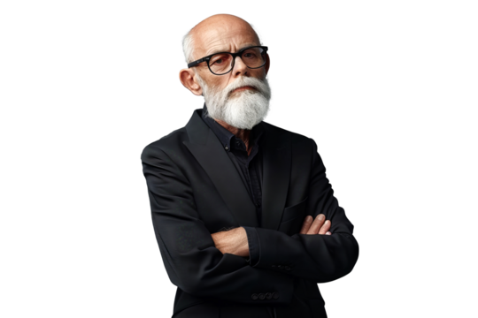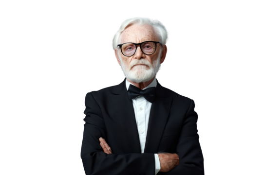 Portrait studio Smart and healthy senior business man wearing suit and t shirt that posing and smiling relaxedly isolated on transparent png background.