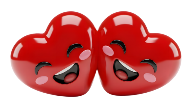 Two shiny red hearts with smiling faces on a transparent background for valentines day