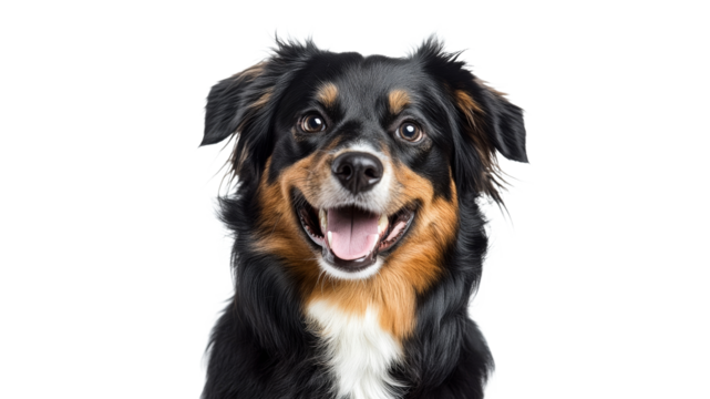 Pug dog with joyful expression on white background
