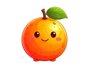 A cute, happy cartoon orange character with big eyes and a smile, isolated on a transparent background 3d fruit illustration