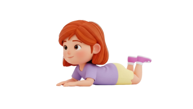 Isolated cartoon girl lying on her stomach, enjoying playtime, relaxation and leisure