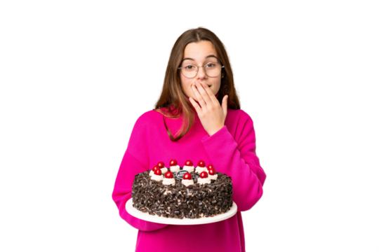 Woman, portrait and face with surprise, shocked and wow with hand covering mouth isolated on a transparent png background. Rumor, speechless and a female model for fake news, secret and announcement