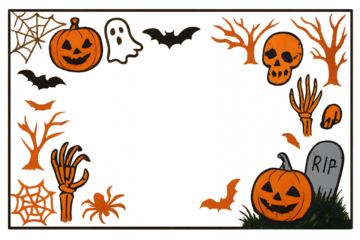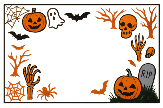 Halloween Frame with Pumpkins, Bats and Skull – Spooky  Border Design