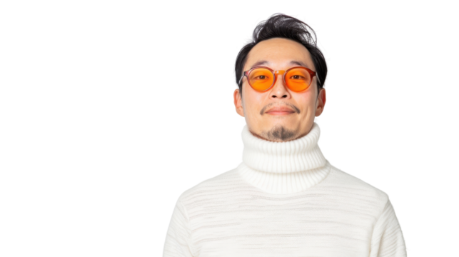 Smiling Elderly Man in Stylish Glasses Close Up on Transparent Background