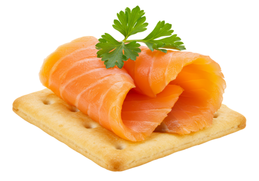 Delicious slices of fresh smoked salmon, perfect for gourmet dishes and appetizers, showcasing its rich color and texture cut out transparent isolated on white background PNG file