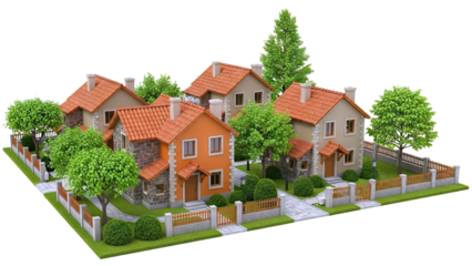 Suburban Houses with Gardens and Fences