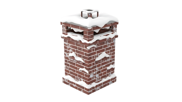 Transparent brick chimney structure isolated on white background