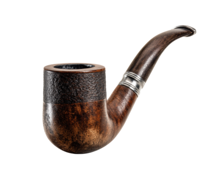 Classic wooden smoking pipe with elegant design and craftsmanship on a transparent background, cut out