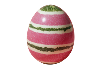 Colorful striped easter egg with pink confetti on transparent background