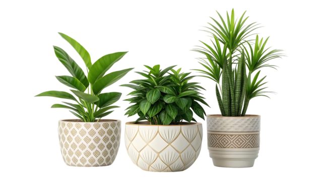 Ornamental plant in white pot, isolated on transparent background, cut out image