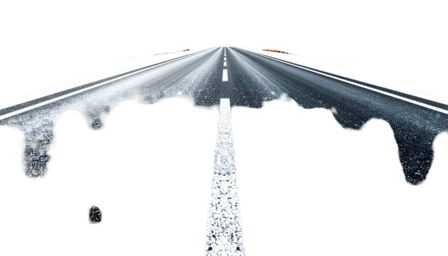 Perspective view of an asphalt road with a yellow stripe, winding through space