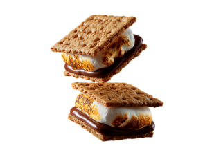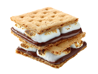 S'mores Graphic Double-Decker Graham Cracker, Marshmallow, Chocolate Sandwich Isolated on Transparent Background, food photography, dessert, S'mores, dessert, food