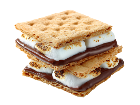 Delicious homemade s'mores graham crackers marshmallow chocolate, Isolated On Transparent Background