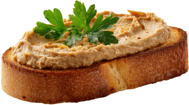 Delicious toast topped with creamy spread and fresh parsley for a flavorful appetizer snack food item