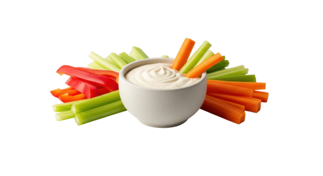 Isolated platter of crudités with dip vegetables carrots celery bell peppers appetizer healthy snack