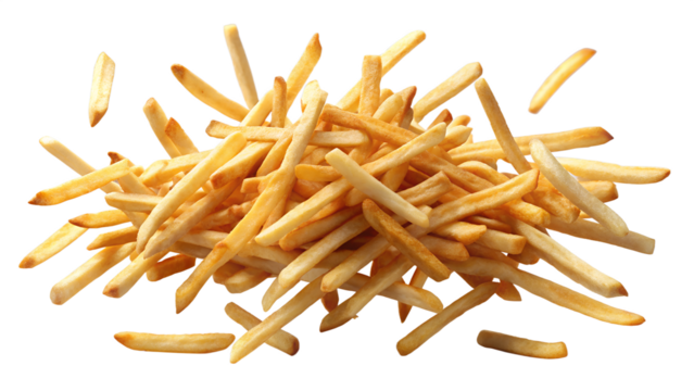 Pile of crispy french fries isolated on transparent background, a popular snack