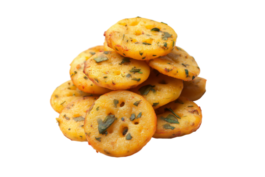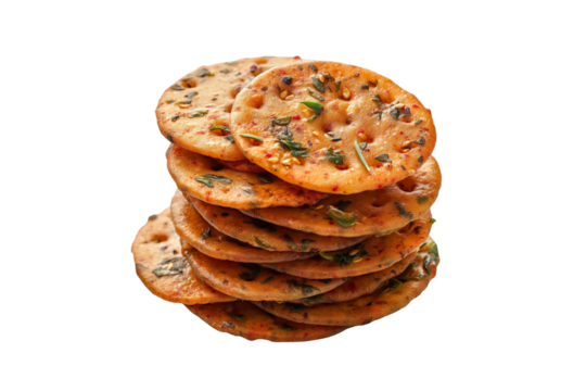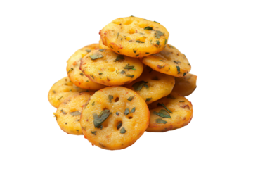 Round Indian Savory Snacks with Herbs Vector Isolated on Transparent Background
