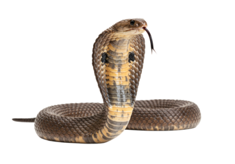 Cobra with hood extended and mouth open isolated over transparent background
