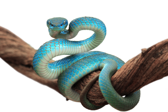 Blue viper snake closeup face, viper snake, blue insularis, Trimeresurus Insularis, animal closeup, viper snake with white background