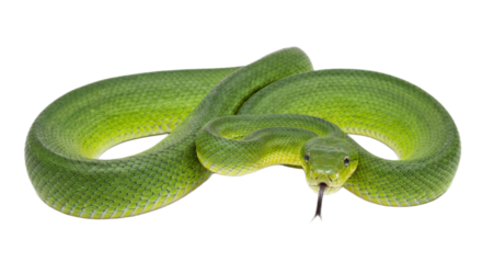Emerald Green Snake: A vibrant green snake with striking scales and piercing eyes, coiled in a defensive posture, showcasing its captivating beauty and the elegance of nature's design.
