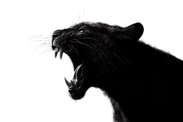 Panther roaring showing sharp teeth monochrome isolated on a transparent background
