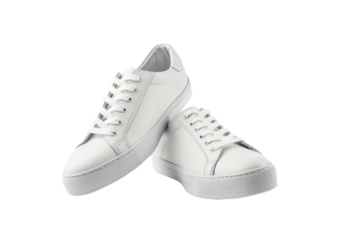 Pair of stylish white sneakers isolated on transparent and white background.PNG image