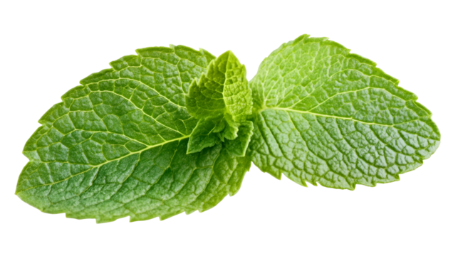 Fresh Green Mint Leaves Isolated on Transparent Background for Culinary and Herbal Applications, Top View