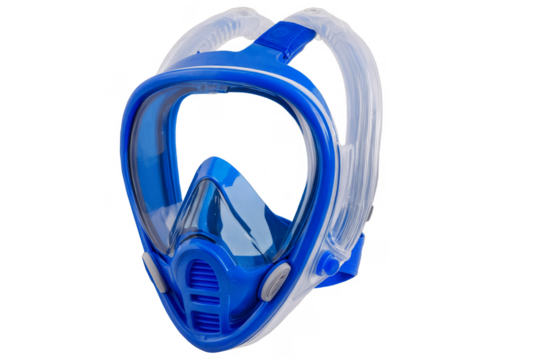 Full-face snorkeling mask in blue color against a transparent white background, ideal for png conversion