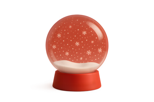 Clear glass globe with white snow and wooden base isolated on a transparent background