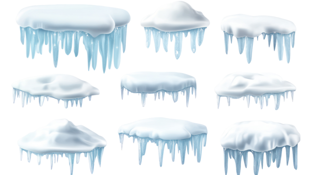 Snow caps creating a winter wonderland atmosphere, perfect for festive designs on a transparent background