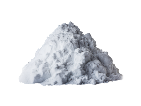 Isolated mound of white powder substance centered in the frame against a plain backdrop area on transparent background