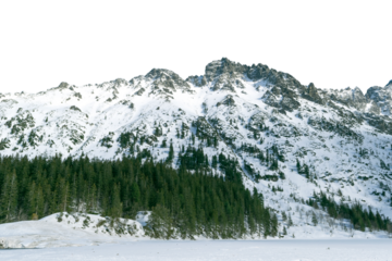 Mountain peaks with snow-capped summits, cut out, isolated on transparent background.