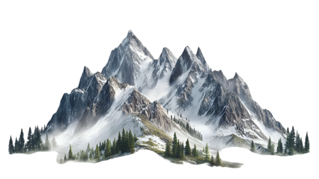 A majestic mountain range with snowcapped peaks isolated on transparent background