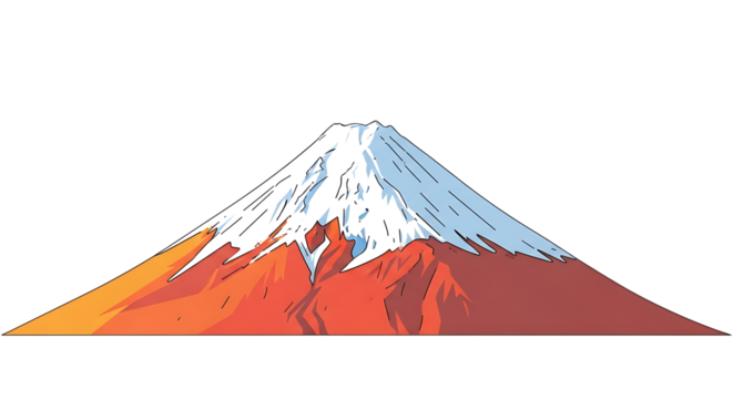 Illustration of stylized illustration of mount fuji, a snowcapped volcano in japan, isolated on transparent background