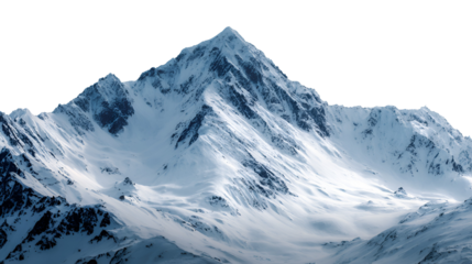 Majestic snowcapped mountain peak isolated on transparent background, a breathtaking landscape of natures grandeur and beauty