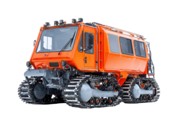 Orange Snowcat Machine Side View Studio Lighting A I G E N E R A T E D - P N G isolated on a transparent background
