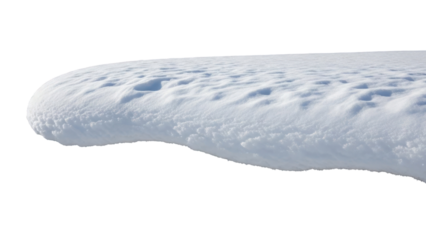 A close-up view of a snowdrift with soft shadows, isolated on transparent background