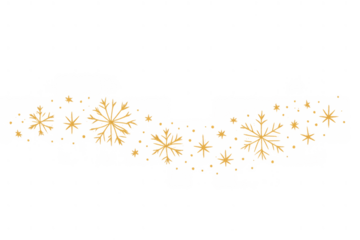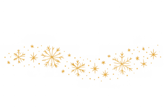 Gold glowing light effect creating a festive border with abstract snowflakes and sparkle elements. Transparent background