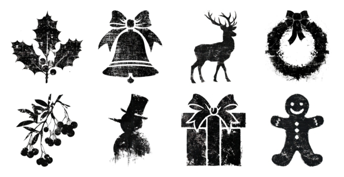 PNG Vintage festive holiday silhouette icons, element set on transparent background