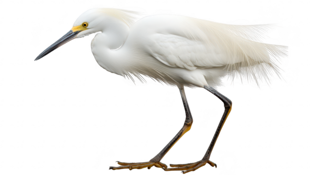 Graceful Snowy Egret on transparent background
