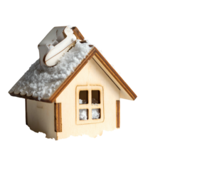 Transparent winter house illustration with snowy roof