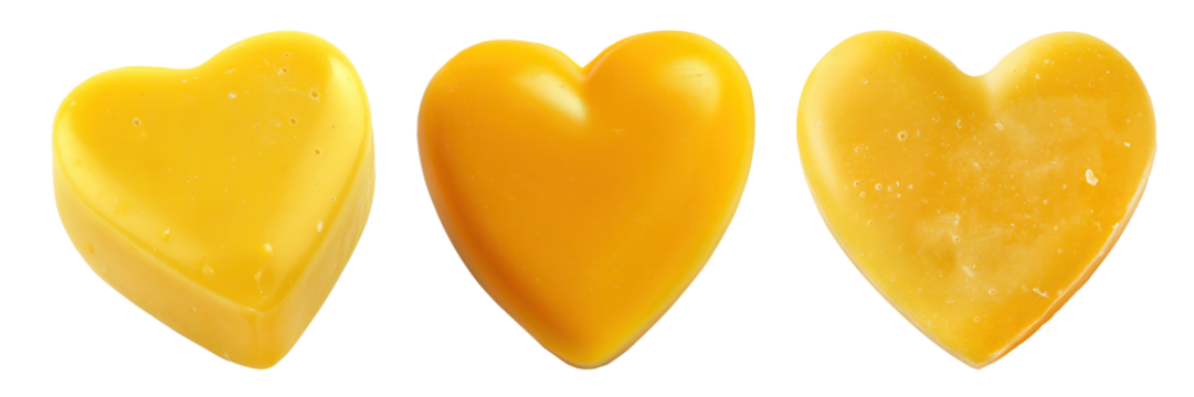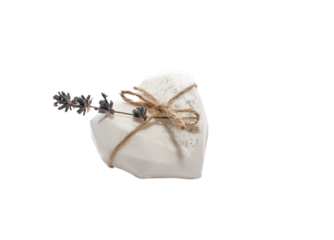 Organic handmade soap in the shape of a heart with natural ingredients, top view.